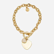 Dress up your look with this beautiful Monogrammed Heart Bracelet! Your monogram is engraved on a heart pendant and layered with a smaller pave heart charm. This bracelet would look great paired with our Monogrammed Pave Earrings! Personalize one to add to your jewelry box today!