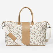 Travel in style with this Personalized Leopard Weekender, designed to be both chic and functional for any getaway. Featuring an adorable neutral leopard print, this bag adds just the right amount of personality while remaining effortlessly versatile. A sleek leather strip down the front is the perfect place to showcase a custom monogram or name, making it uniquely yours.