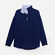 This Personalized Quarter Zip Sweatshirt  is a true wardrobe essential for monogram lovers. Designed with an oversized, relaxed fit, it's perfect for layering and effortless everyday wear. A fun pop of color or pattern lines the inside of the collar, adding a playful touch you'll love whether it's zipped up or worn open. Made for cooler temperatures and easy transitions between seasons, this cozy quarter zip pairs comfort with timeless style. Finished with your custom monogram, it's a personalized staple you'll reach for again and again.