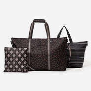 - Weekender bag measures approximately 26 inches wide, 15 inches tall, and 7 inches deep