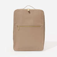 Meet your new go-to travel and work companion. This Personalized Travel Laptop Backpack in taupe is designed to keep you organized, polished, and ready for anything. Its clean, structured shape, and smooth finish give it a modern, elevated look, while the monogram on the front adds a meaningful touch. A roomy front pocket keeps essentials easy to grab, while the padded back compartment secures your laptop with a simple snap tab. Adjustable straps make it comfortable, durable, and practical for everyday use.