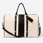 Elevate your travel style with our Monogrammed Weekender Bag, available in chic neutral ivory and ivory with black accents. Crafted for both fashion and function, this spacious bag features a roomy interior to fit all your essentials, while gold hardware adds a touch of luxury. The included luggage tag ensures easy identification, making your travels even more seamless. Personalize it with your initials for a unique, signature look.